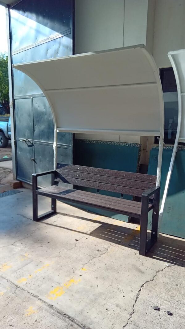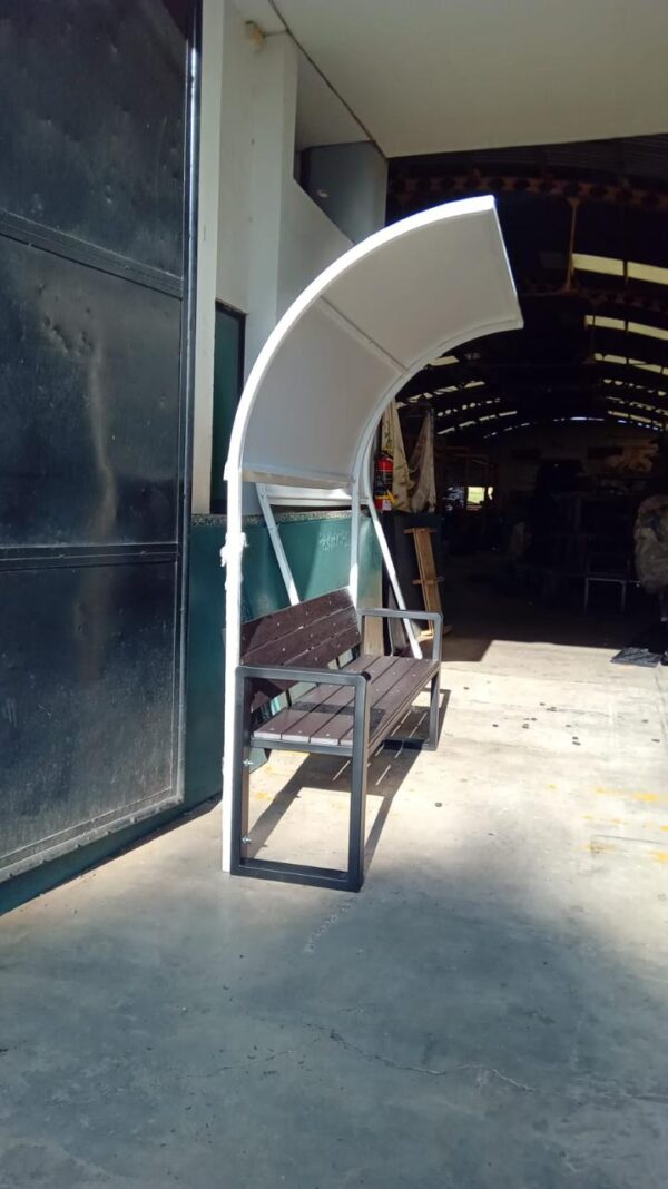 el techo es con base de estructurametalica y puede llvar policarbonato o lona, segun lo requiera o el diseño perimita